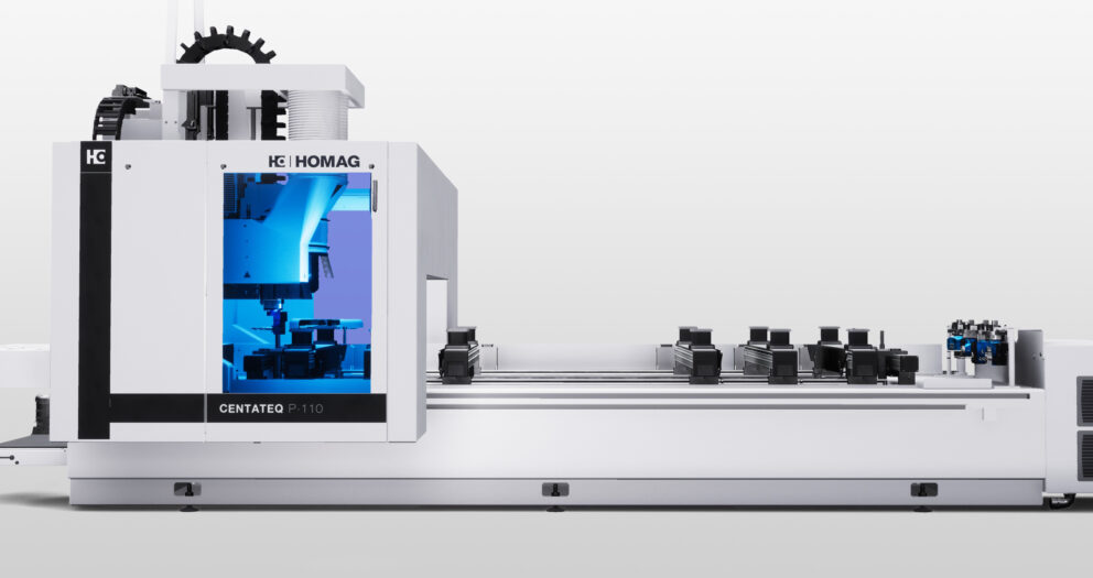 HOMAG CENTATEQ P-110 – CNC apstrādes centrs ar 3/4/5-asu konfigurāciju, powerTouch vadību un instrumentu mainītāju. Ideāls risinājums precīzai un elastīgai mēbeļu ražošanai Latvijā.