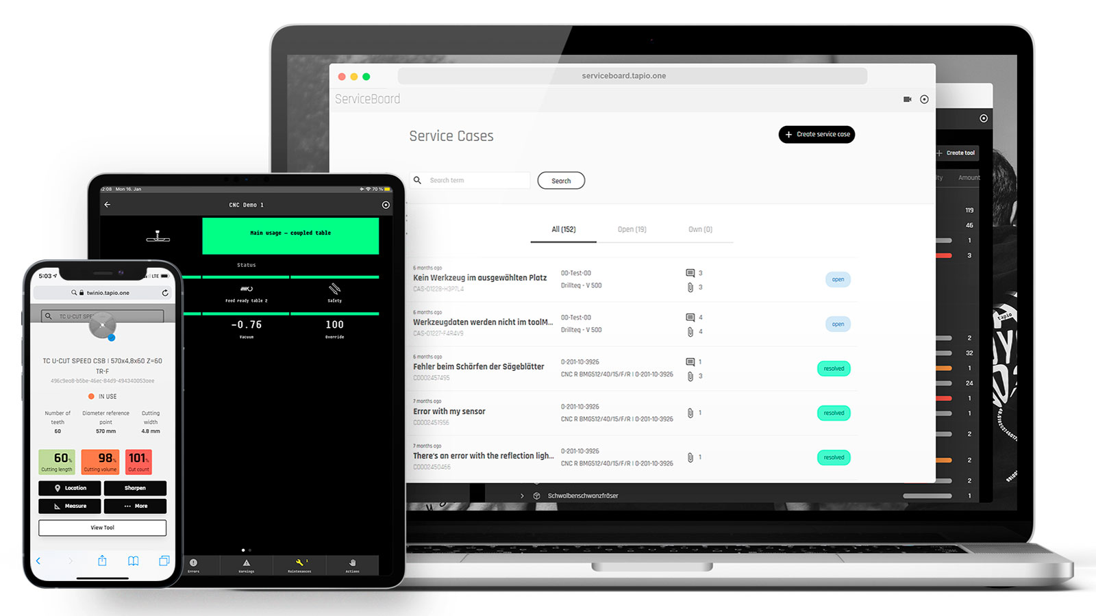 tapio nodrošina centralizētu ražošanas procesu pārvaldību, iekārtu monitoringu, datu apmaiņu starp iekārtām, kā arī integrāciju ar HOMAG un imos risinājumiem. Tā veido digitālo pamatu viedai ražošanai, kas ir pieejama no jebkuras vietas.