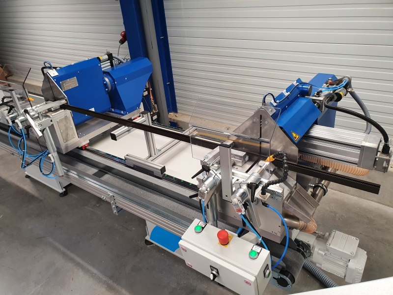 - 3 asu vadība gareniskajā asī un motorizēta leņķu iestatīšana abās zāģa galvās no 22,5° uz iekšu līdz 135° uz āru.