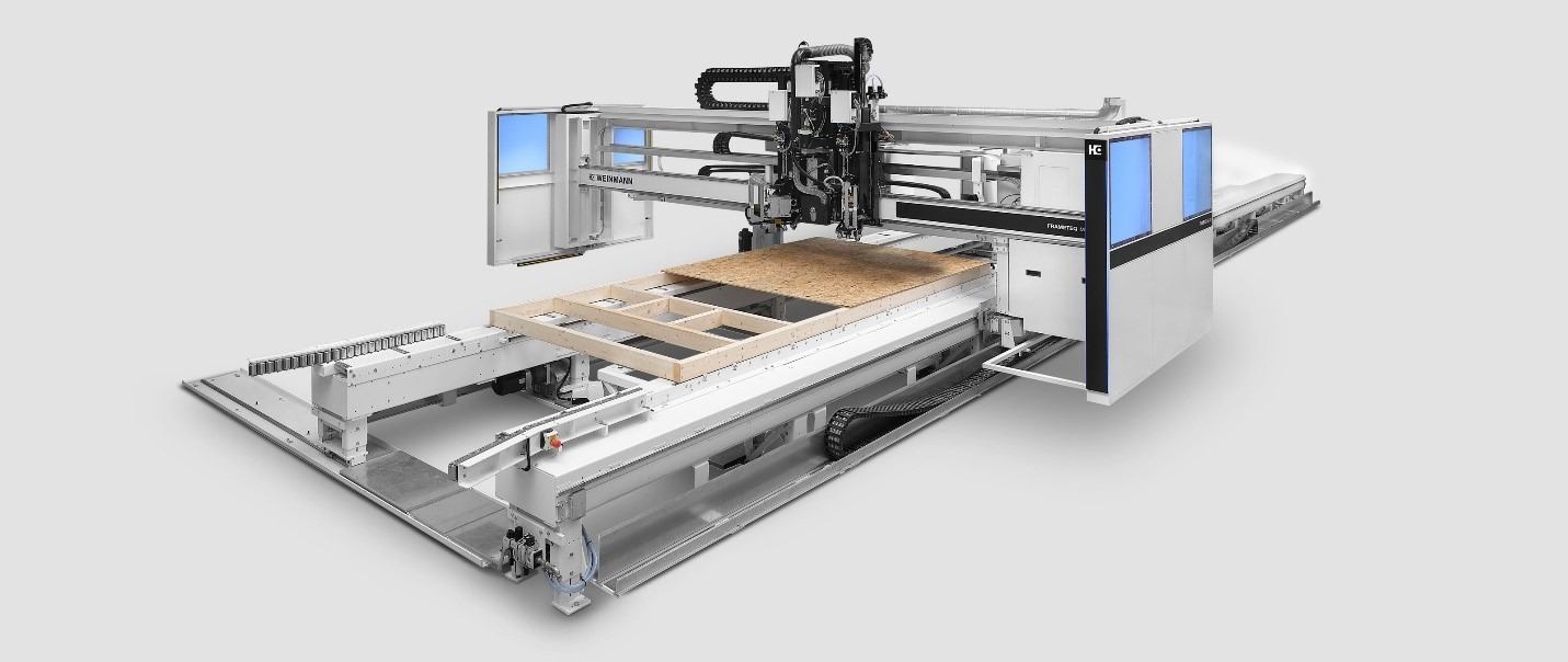 Kombinēta sienas paneļu izgatavošanas sistēma FRAMETEQ M-300 no WEINMANN pēc izmēriem ir nedaudz lielāka par darbgaldu, taču, pie tam apvieno sevī karkasu siju salikšanas un apšuvuma piestiprināšanas procesus. Automātiskai koka karkasa elementu ražošanai ar apšuvumu vienā pusē ir nepieciešams tikai viens operators.