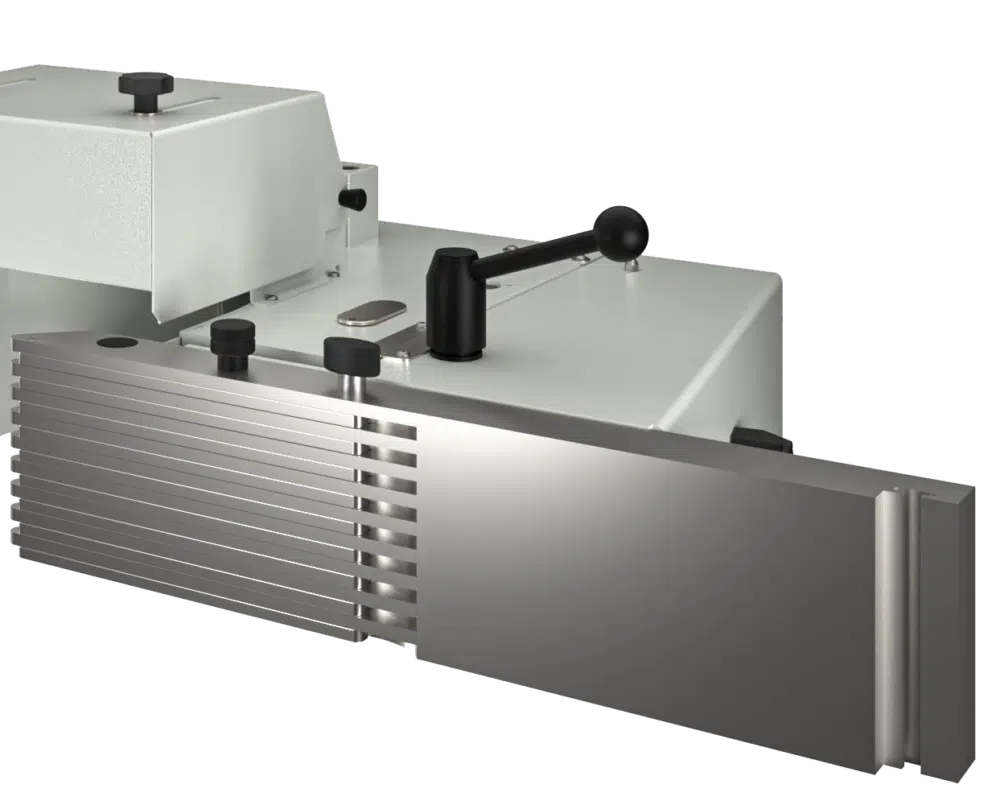 • Padeves balsta elektromotoriska pozicionēšana ar gudru fiksācijas mehānismu sniedz reālu darba atvieglojumu. Padeves ierīces augstumu var viegli noteikt un sasniegt caur vadības sistēmu, turklāt to var integrēt programmās. Padeves dziļumu var ērti regulēt, pateicoties lodīšu gultņu