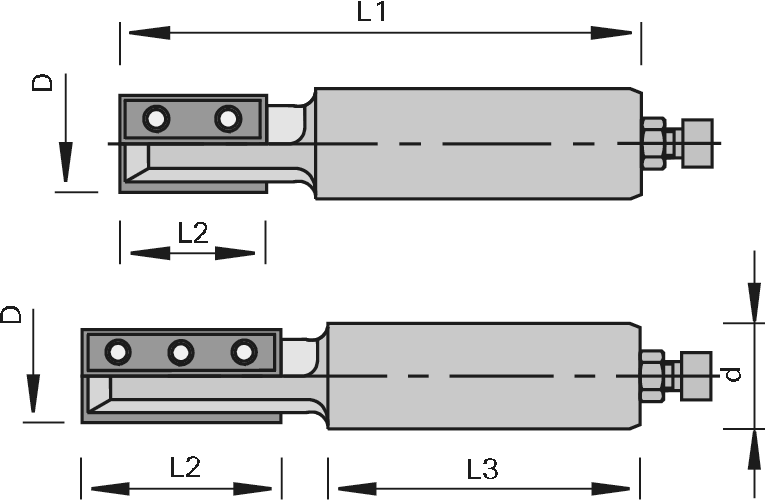 Kāta frēzes no cietā sakausējuma HW – Z=2, ar mini grozāmām plāksnēm