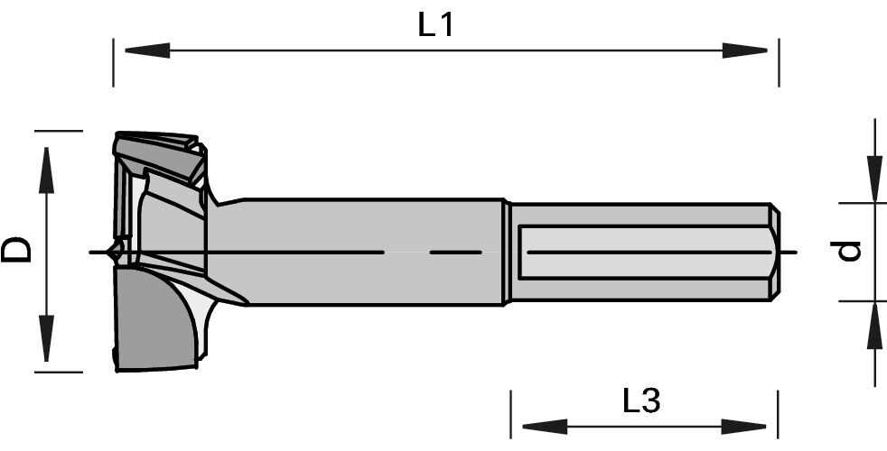 Caurumu urbšanai bez šķembām armatūrai masīvkokā un skaidu plātņu materiālos.
