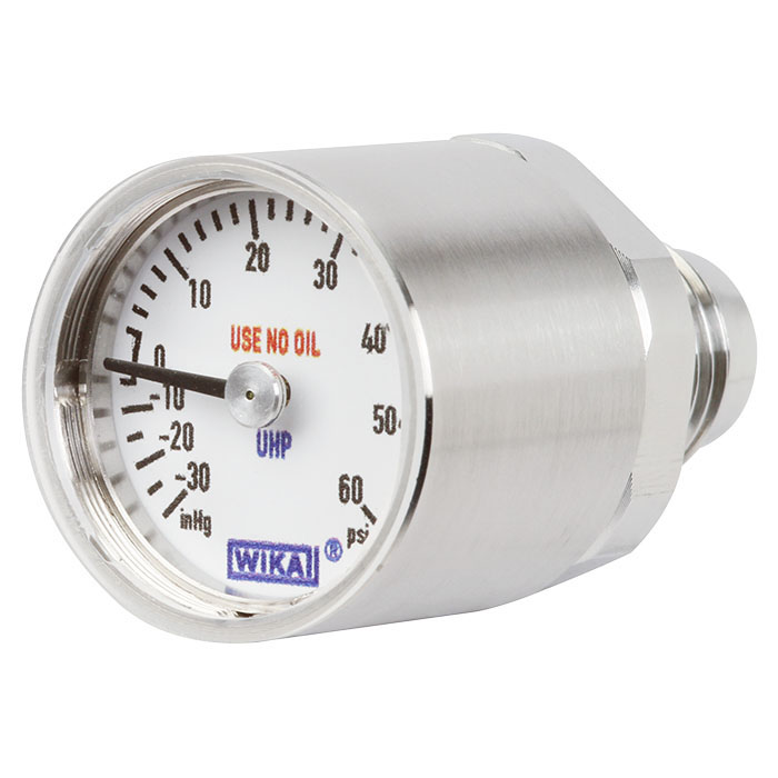 Sākums>Kontroles un mērīšanas ierīces>Spiediens>Manometri>Diafragmas manometri>Modeļi 432.10, 432.15; Gāzu sadales sistēmām; Medicīnā izmantojamajām gāzēm;Testēts hēlija noplūdēm; hēlija noplūdes ātrums ≤ 10-9 mbar – l/s Elektropolirētas mitrinātās daļas (Ra < 10 μin)