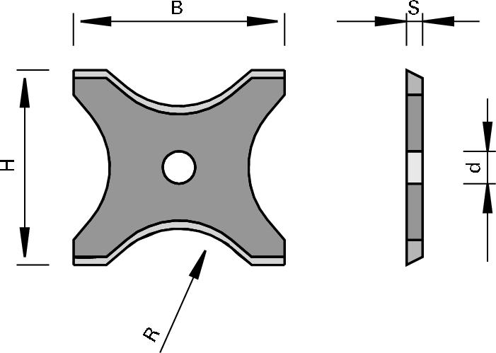 Rādiusa pagriežamie naziši HW ar 2 griezējrādiusiem (tauriņa formā), Simetriski