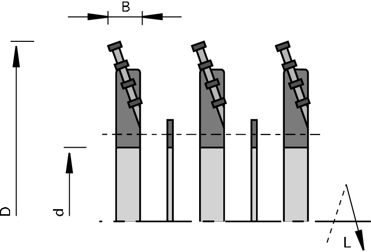 Paplašināšanas elementi sastāv no atbalsta korpusa ar integrētiem cietsakausējuma segmentiem, starpposma gredzena un skrūvēm.