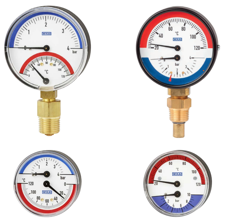 ■ Kombinēta spiediena un temperatūras indikācija ■ Skalas diapazons 0 … 16 bāri, 0 … 150 °C. |
