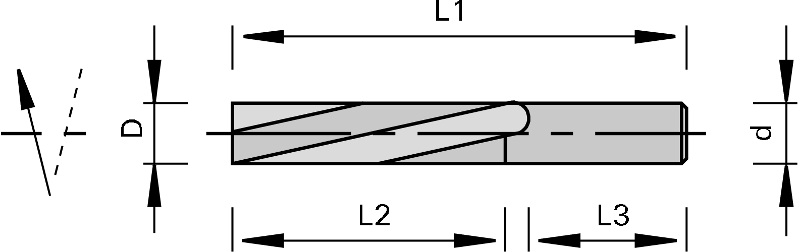 Negatīvs spirālveida vērpes spēks maziem un slikti iespīlētiem apstrādājamiem materiāliem, ar priekšējo pusi uz augšu