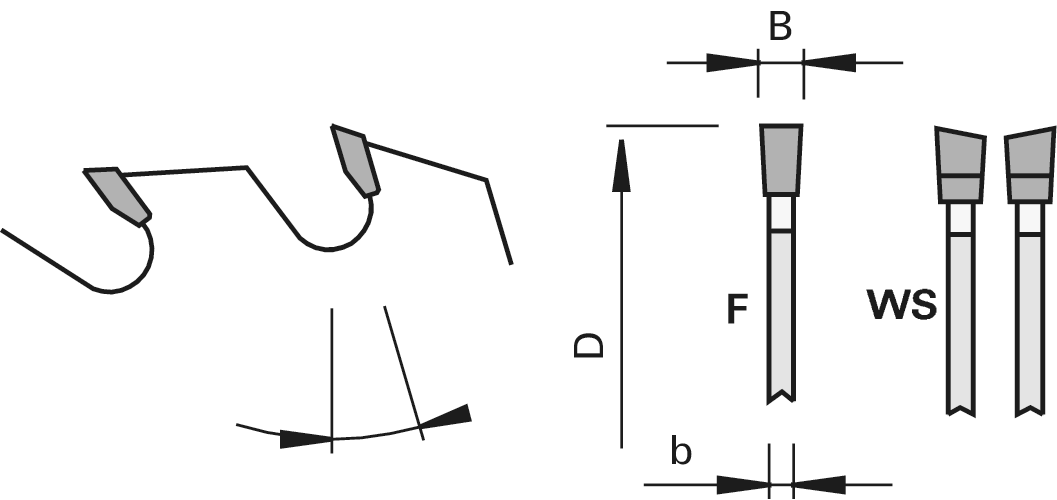 - plakanais zobs “F” eiropas cietkokiem (ozols, dižskābardis, …)