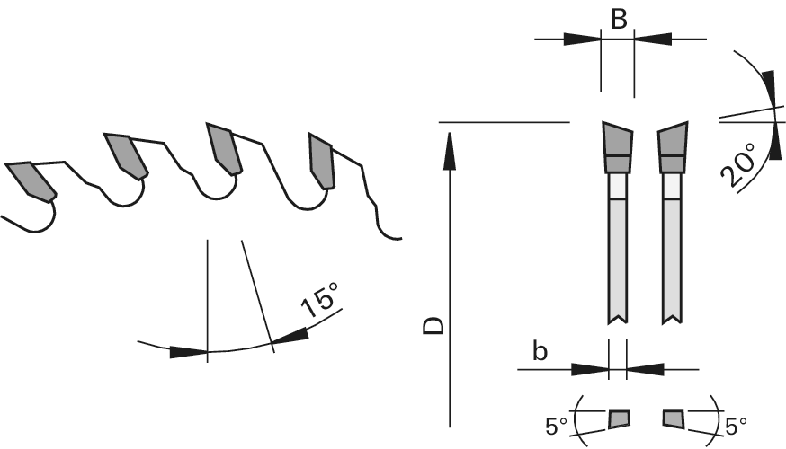 Zobu forma: mainīgs slīps zobs ar “WSA” aksiālajiem leņķiem